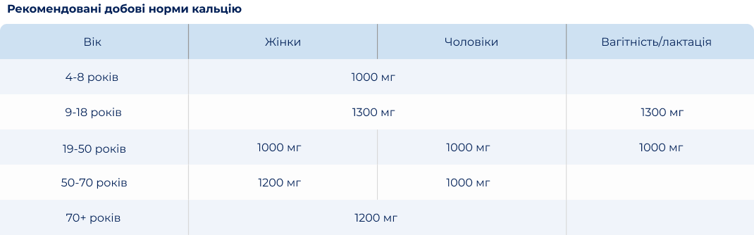 Кальцій є життєво необхідним мінералом, який входить до складу кісток, зубів та нігтів. Роль цього елемента різноманітна, вона включає регулювання надважливих внутрішніх процесів у організмі, наприклад, згортання крові, скорочення м’язів. Основна частина кальцію сконцентрована саме в кістковій системі, де він забезпечує її цілісність і міцність. Оскільки оновлення кісток відбувається постійно, для збереження балансу між їх руйнуванням і утворенням необхідно щодня вживати достатню кількість кальцію. Дефіцит кальцію неминуче призводить до захворювань кісток, одним із яких є остеопороз.